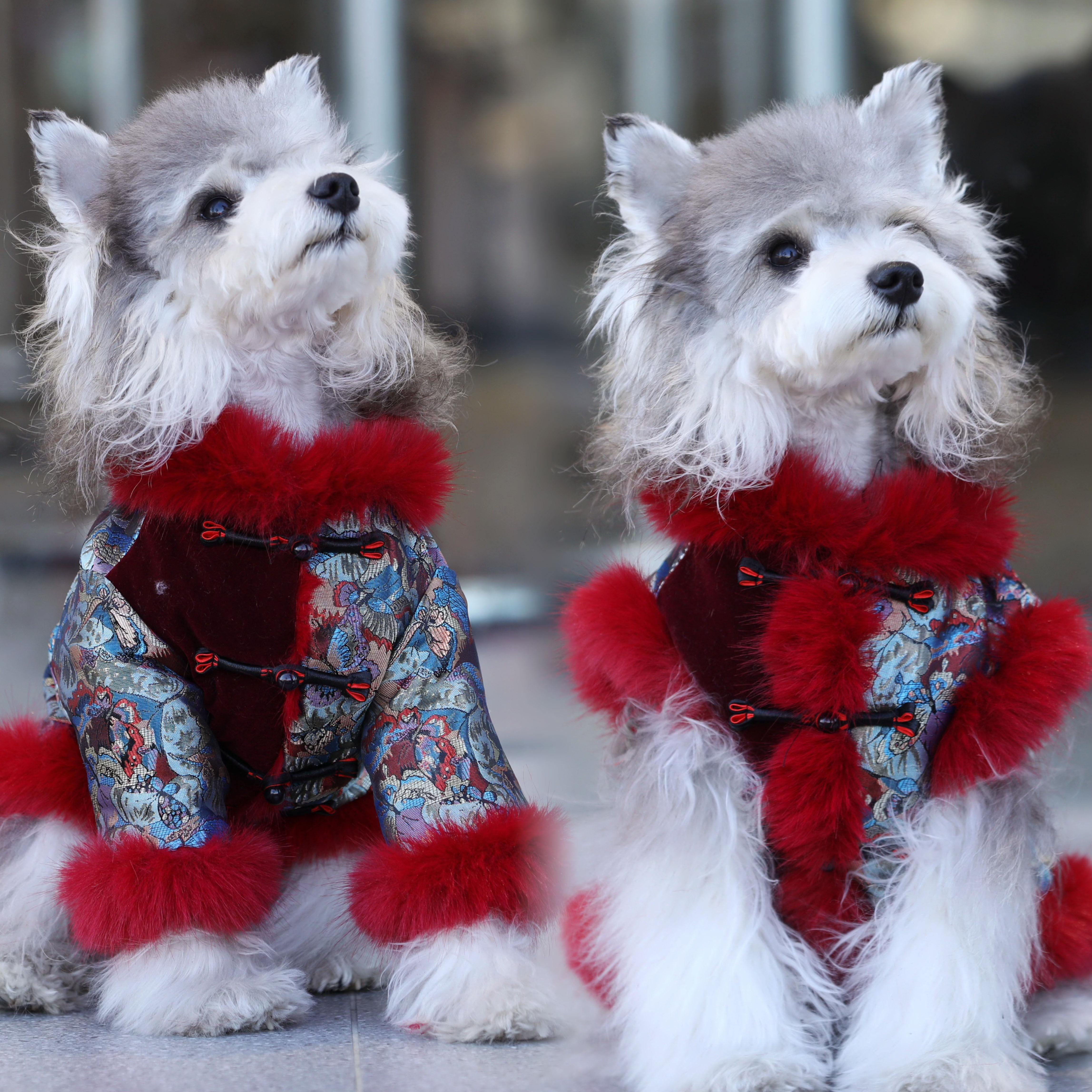 宠物猫狗衣服 秋冬保暖防寒新中式新年毛边棉衣马甲 中小大型犬服