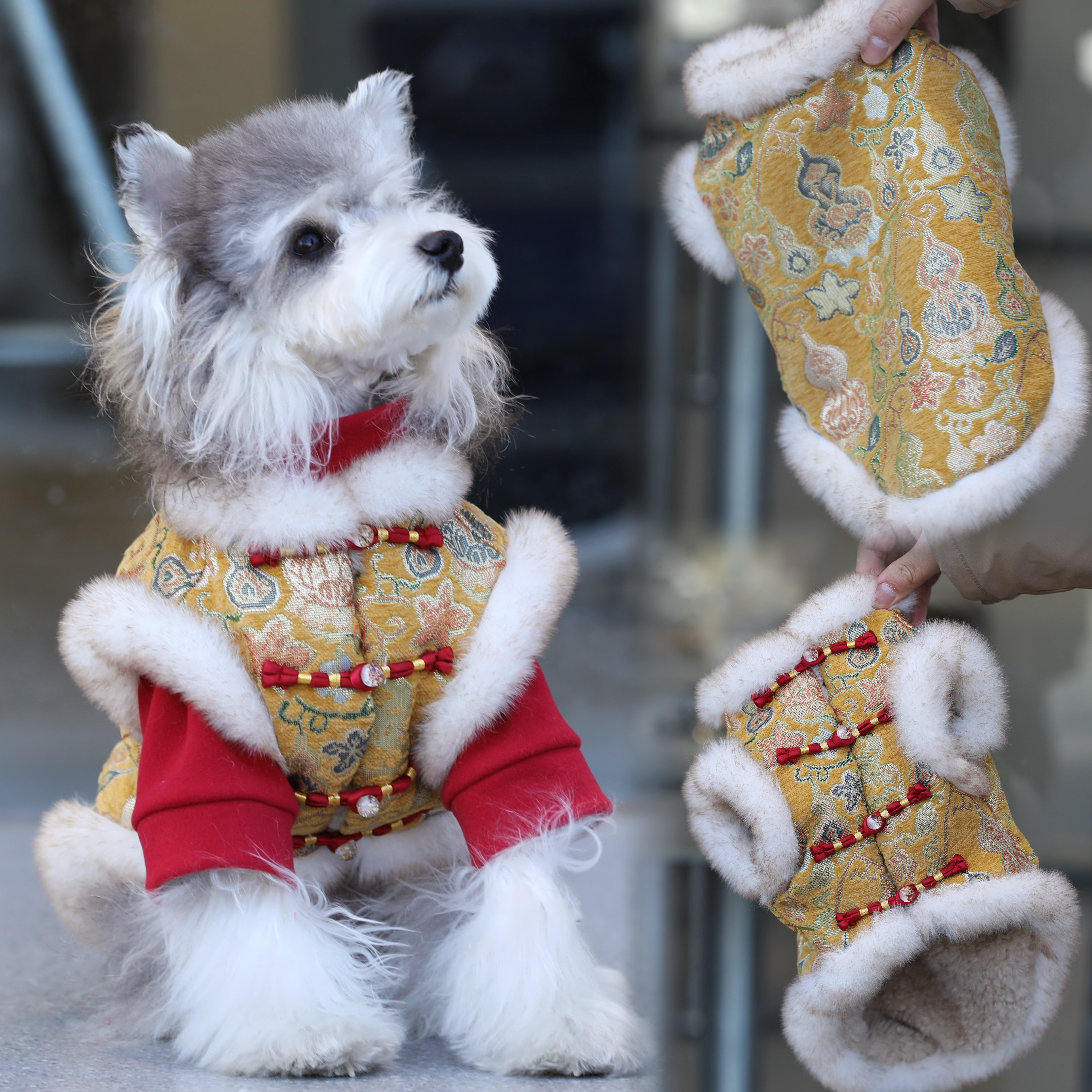 宠物猫狗衣服 秋冬保暖防寒新中式新年福禄毛领马甲 中小大型犬服