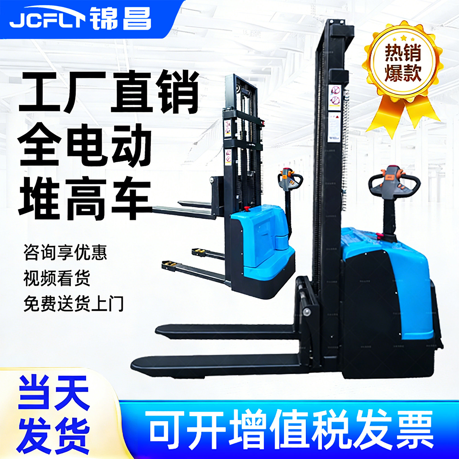 全电动堆高车步行式升高车站驾式电动叉车托盘堆垛机充电装卸铲车