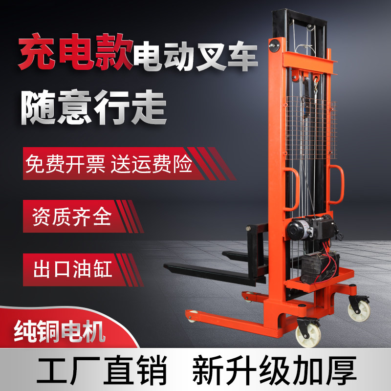 电动叉车手动液压堆高车充电款升降搬运车铲车升高便携1吨2吨电池
