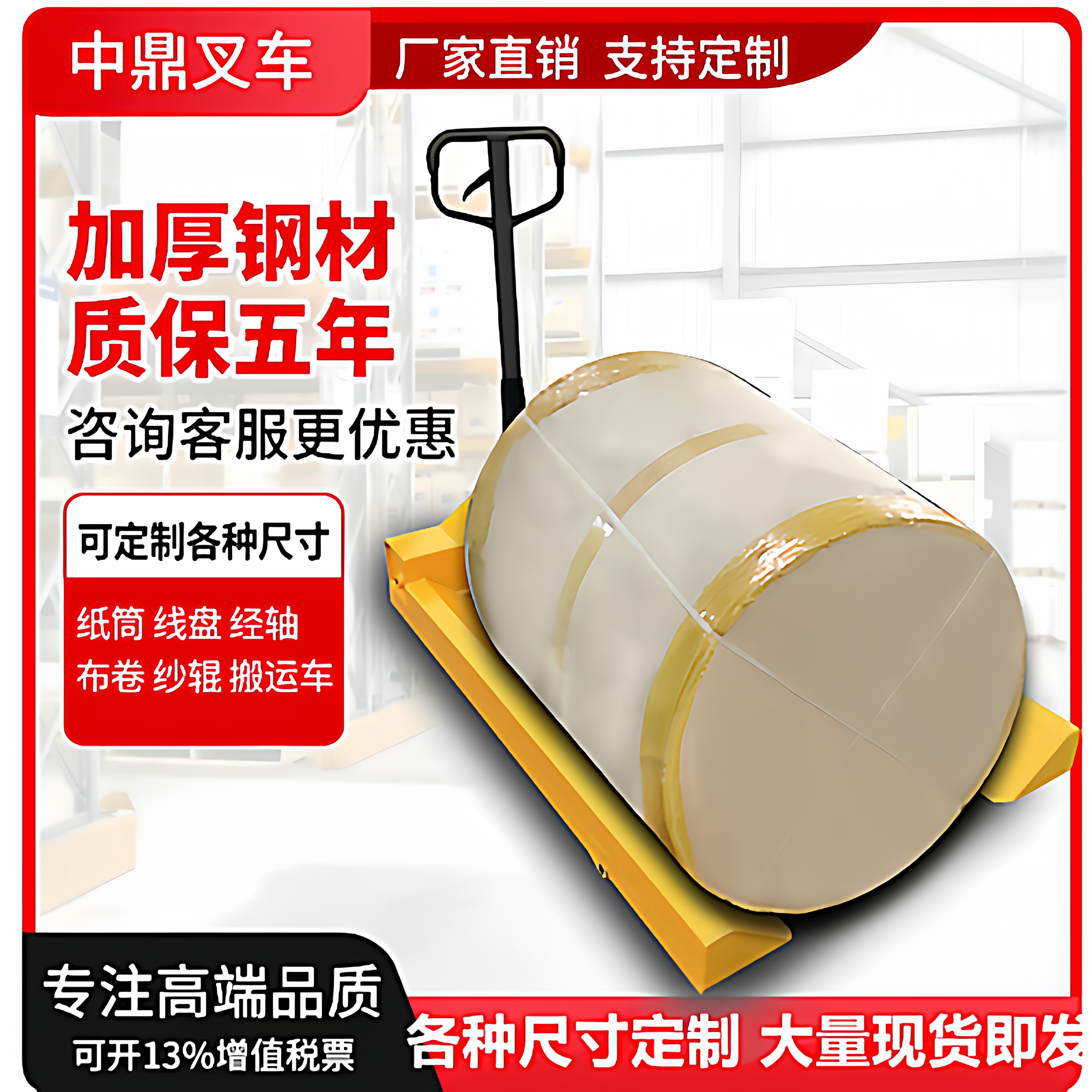 2T3吨手动液压纸卷叉车纸筒车电动盘头车纱辊经轴线盘搬运车地牛