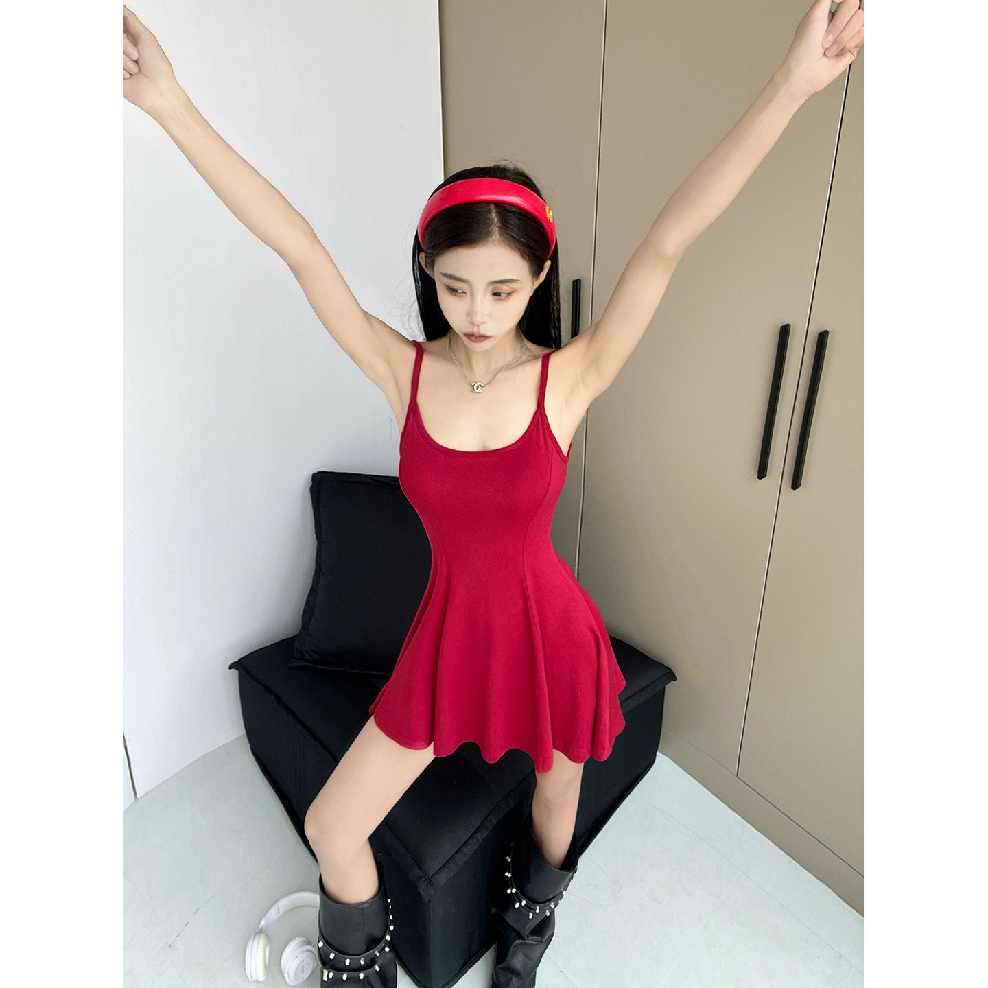 纯欲性感吊带连衣裙女夏季新款修身气质红色裙子显瘦收腰a字短裙