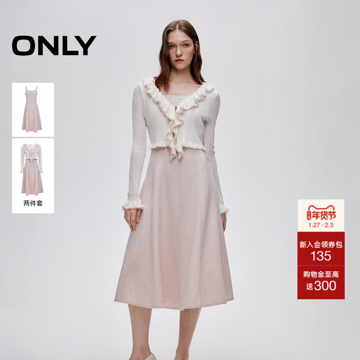 ONLY2026春季新款通勤风荷叶边针织吊带约会中长裙套装连衣裙女