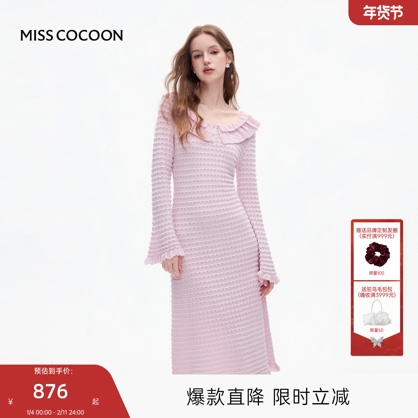 【特价199】映想女装秋冬季荷叶边鱼尾毛衣年会针织小红裙连衣裙