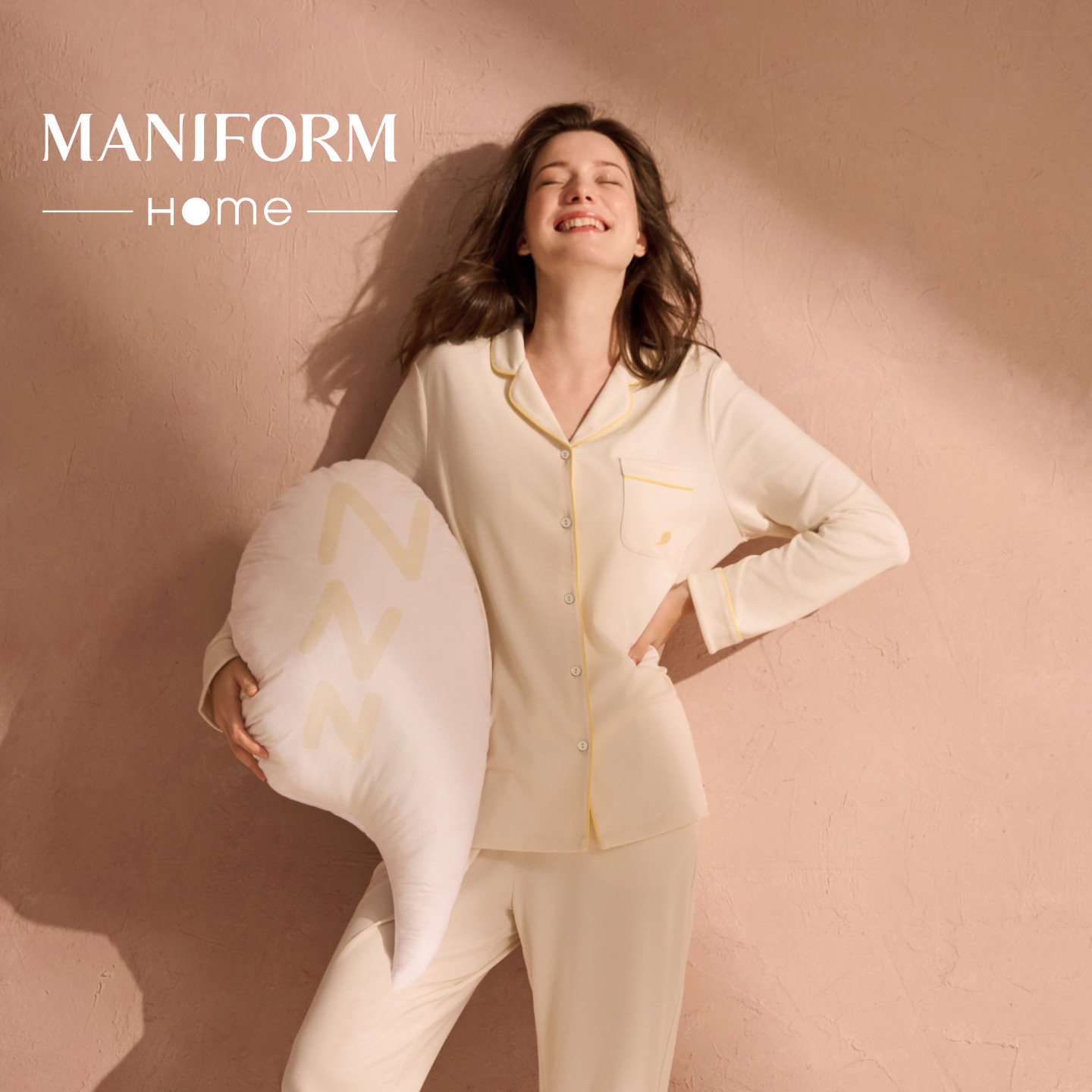 曼妮芬春夏女款丝滑长袖长裤套装女士家居服睡衣睡裤可外穿起居服