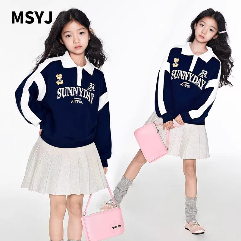 MSYJ 春装卫衣女童polo领2026新款中大童休闲童装长袖上衣套头