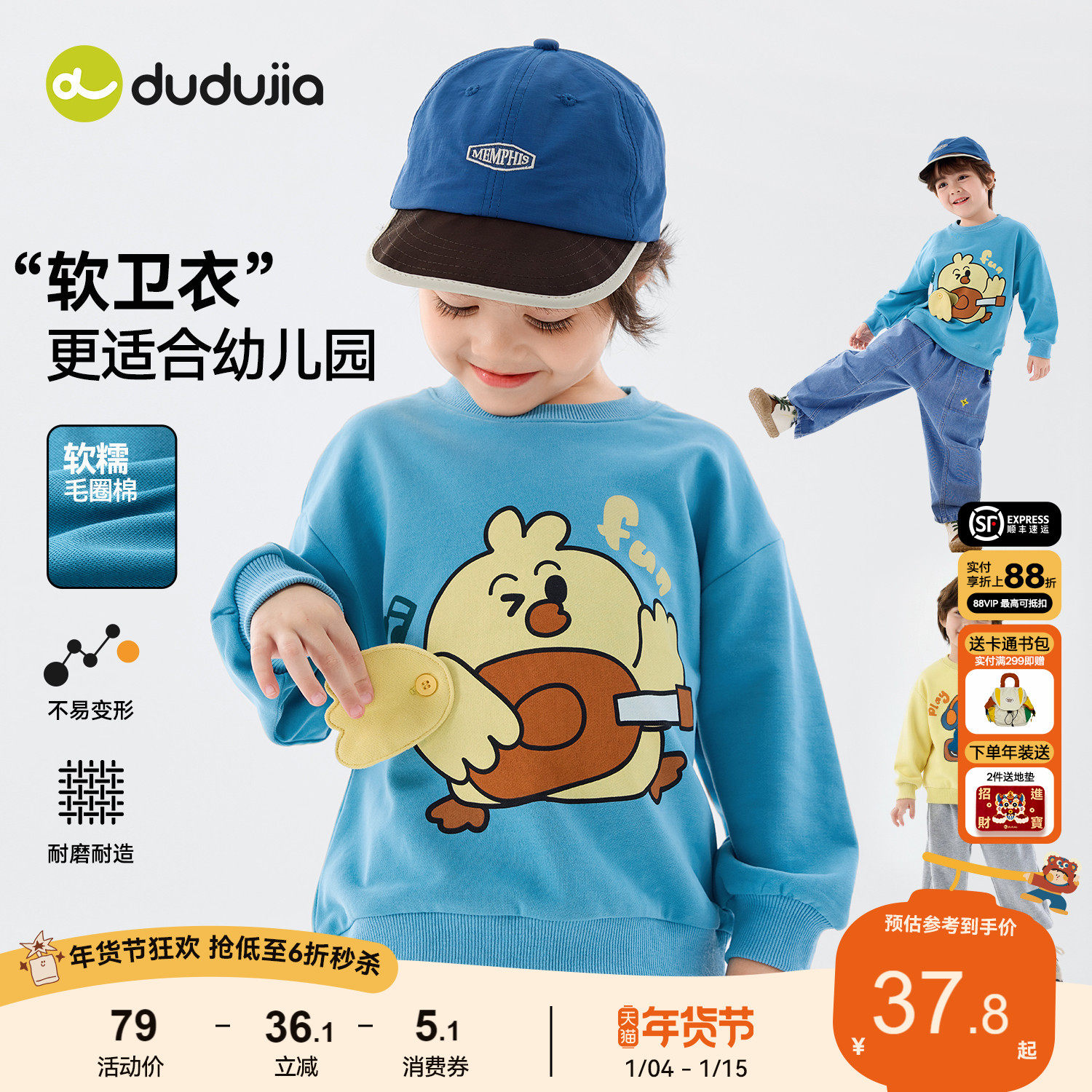 【亲肤小毛圈】嘟嘟家儿童卫衣男童春装女童上衣宝宝春季新款衣服
