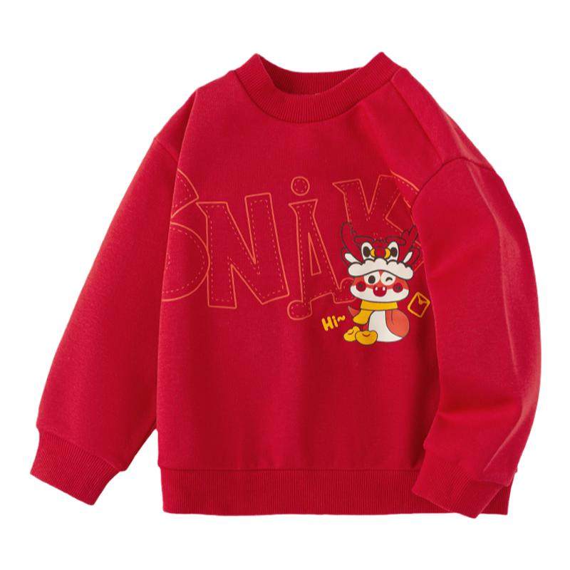巴拉巴拉男童卫衣加绒女童红色上衣儿童拜年服新年2026春装童装小
