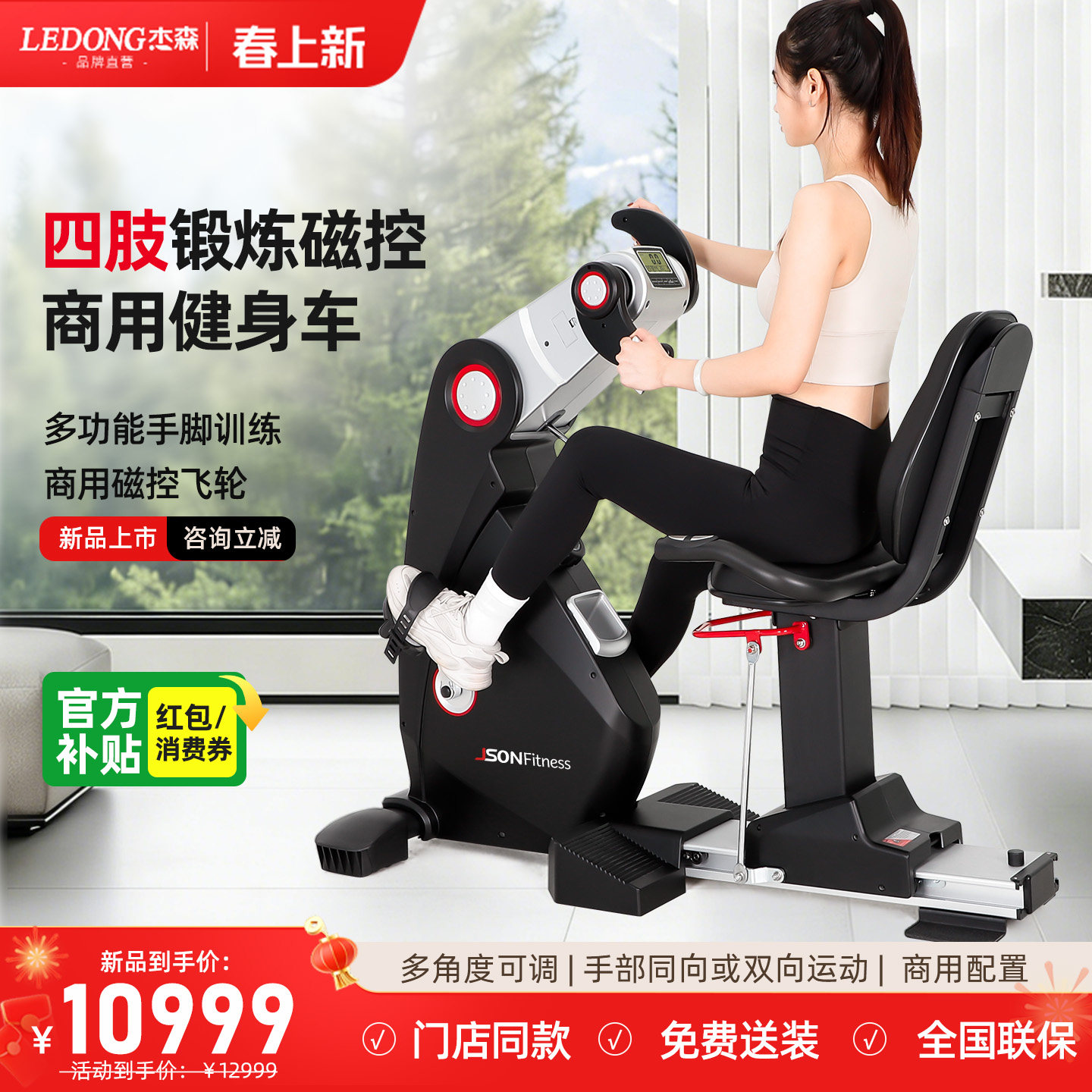 杰森多功能健身车手脚锻炼中老年康复脚踏车社区商用单车健身器材