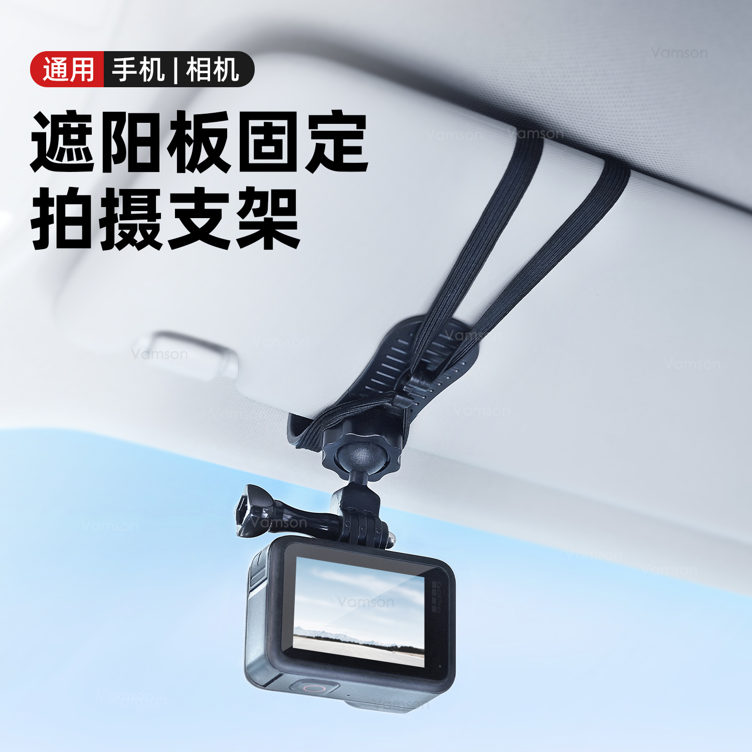 适用GoPro12 汽车遮阳板夹DJI 大疆相机固定支架车载手机支架配件