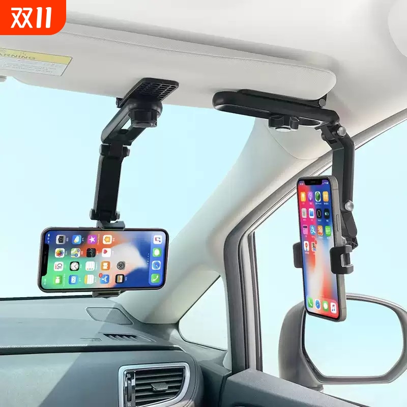 汽车遮阳板车载手机支架新款旋转电动车后视镜导航夹子固定支撑架