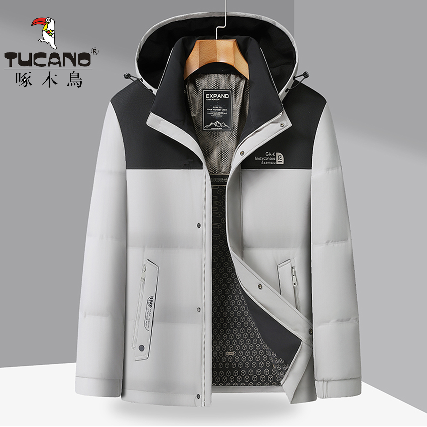 啄木鸟短款连帽男士羽绒服潮拼色男款羽绒袄冬季加厚保暖外套冬装