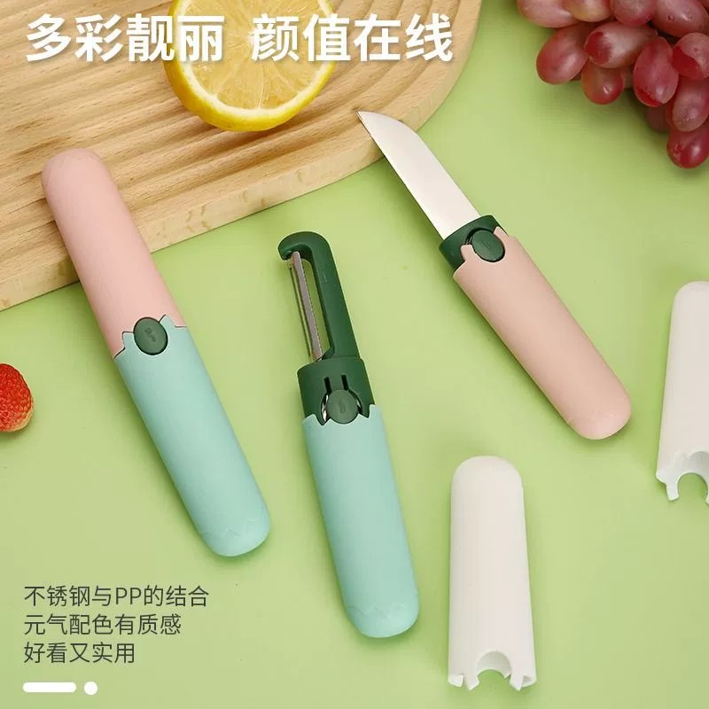 不锈钢户外水果刀不锈钢带保护套削皮器小刀削皮刀不锈钢宝宝辅食
