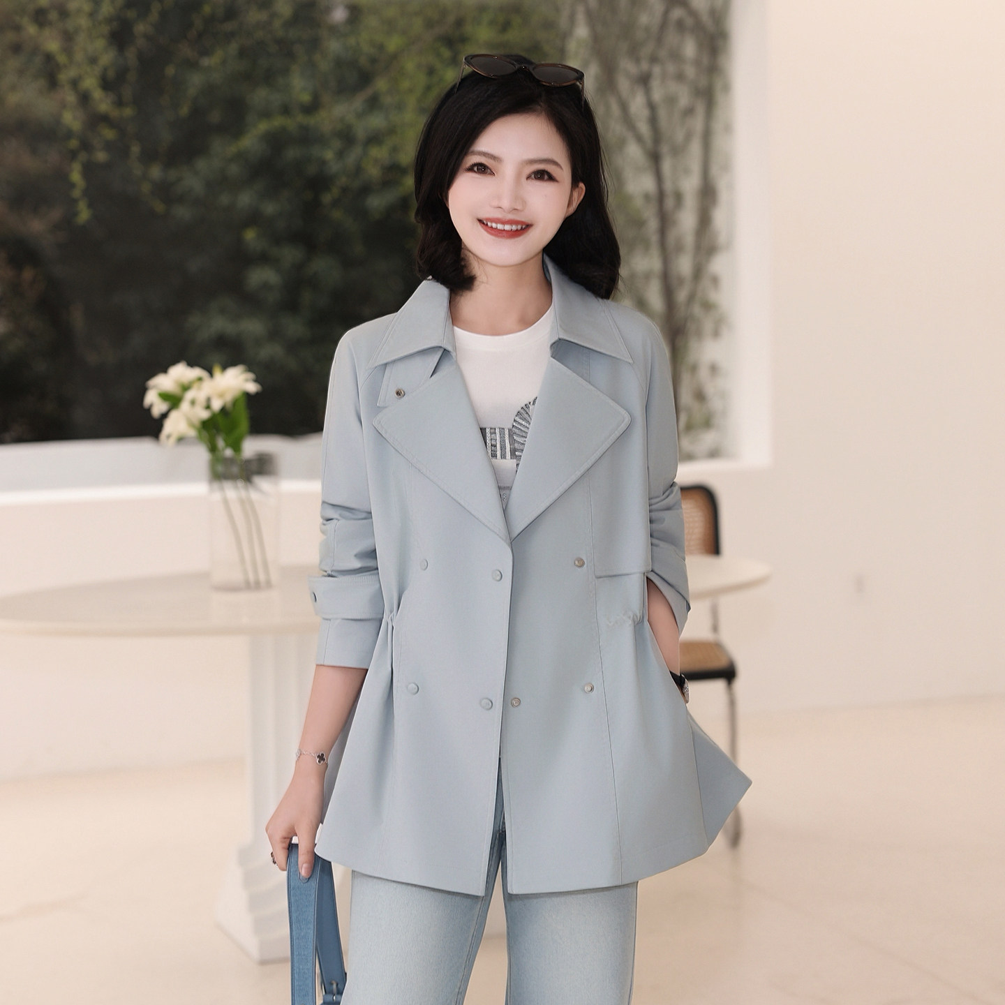 - 双排扣短款风衣外套女