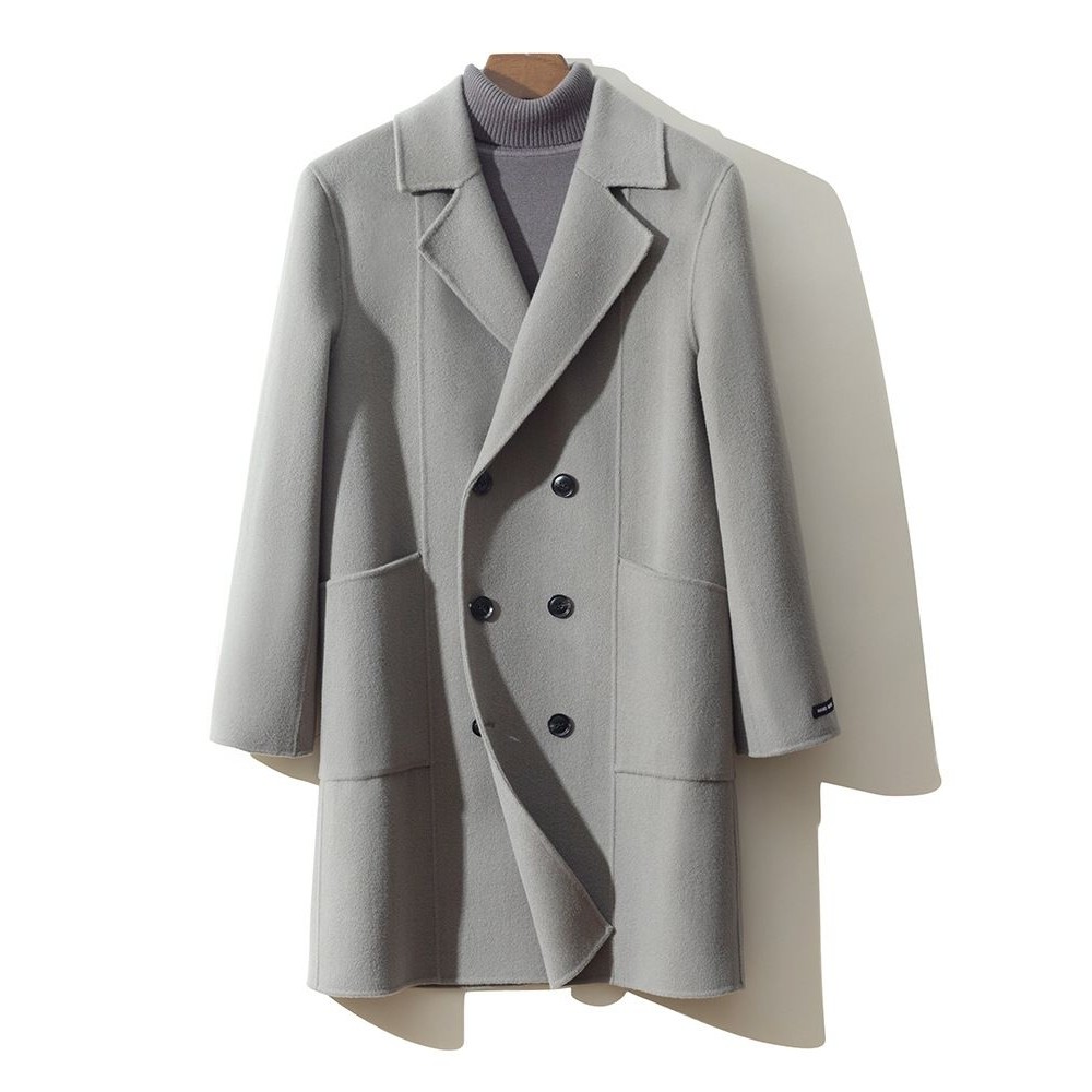 秋冬新款西装领羊毛大衣男士双面呢子中长款商务休闲毛呢风衣外套