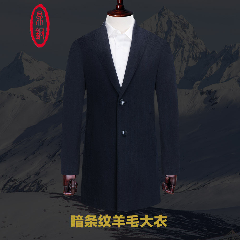 鼎铜西装领羊毛大衣男商务秋冬季中年男士中长款高端毛呢西服外套