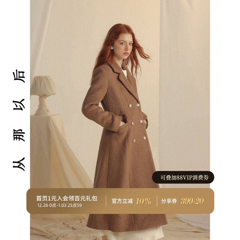 从那以后法式中长款毛呢外套冬季高级感穿搭西装领羊毛大衣女秋冬