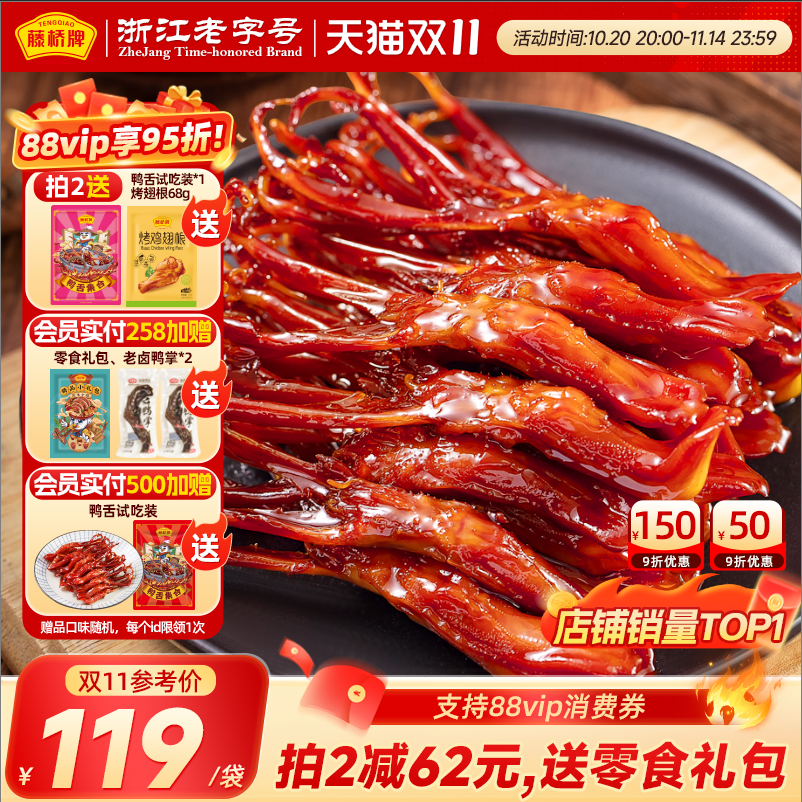 【李佳琦直播间双11狂欢之夜】藤桥精品鸭舌温州特产卤味零食180g