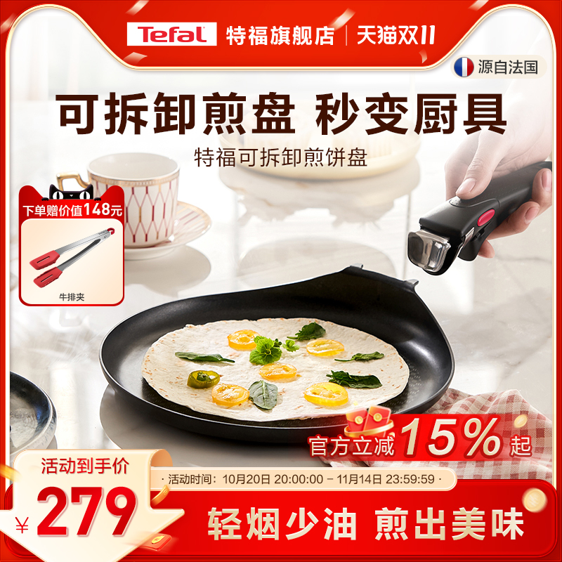 Tefal/特福不粘煎锅平底锅家用煎饼盘煎蛋早餐锅可拆卸手柄锅