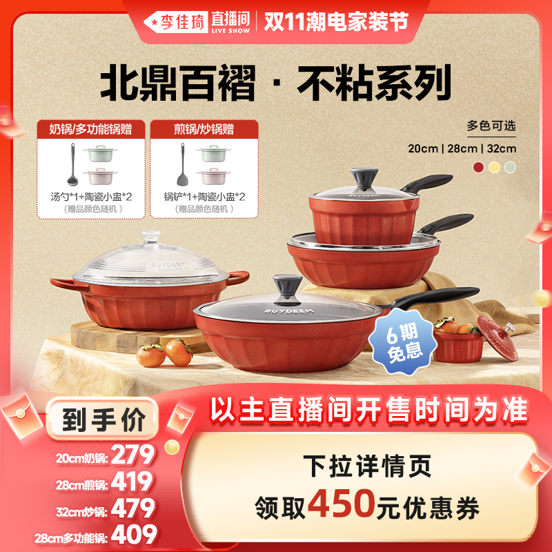 煎锅平底锅不粘锅家用炒菜锅汤锅电磁炉专用锅具蓝钻加深烹饪小锅