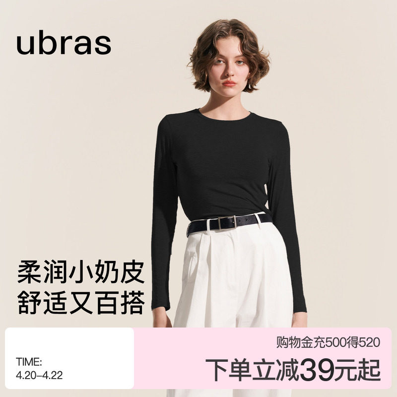 ubras小奶皮肌底衣薄款圆领中领打底衫女内搭长袖T恤秋衣薄款上衣