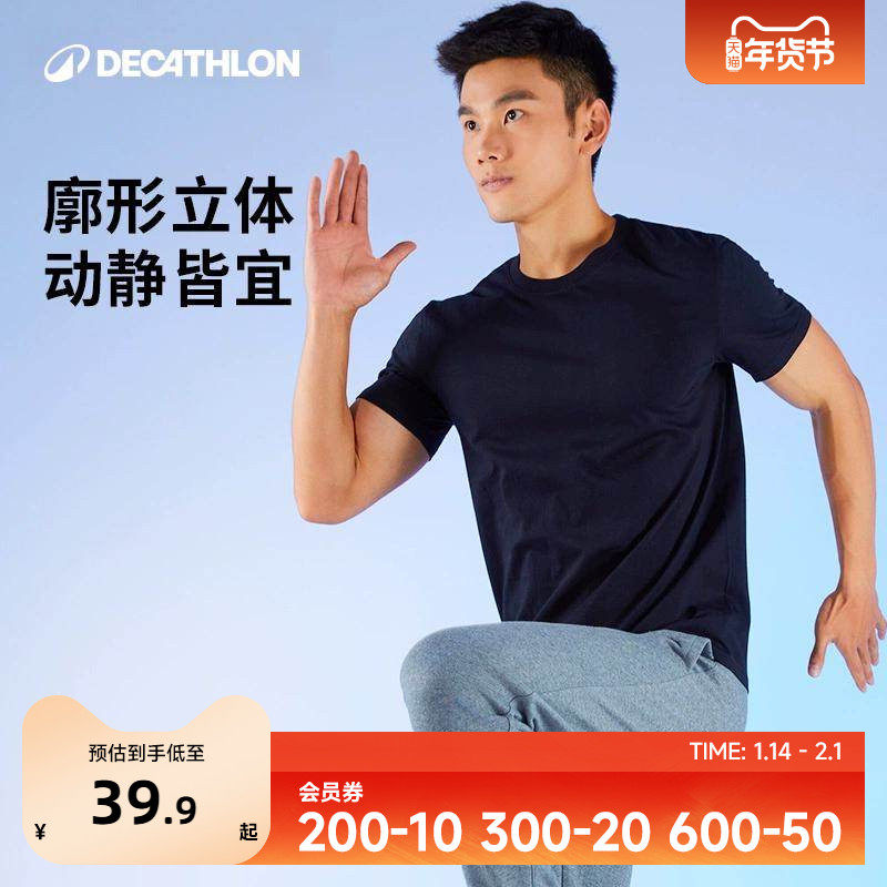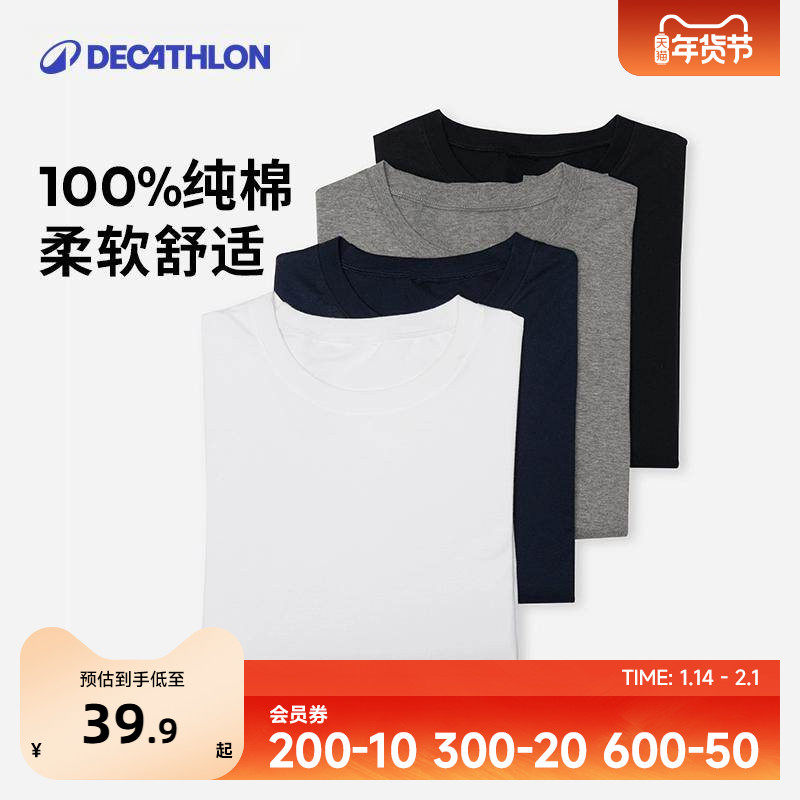 迪卡侬短袖T恤男春夏纯棉圆领宽松运动休闲白色百搭纯色体恤SAT3