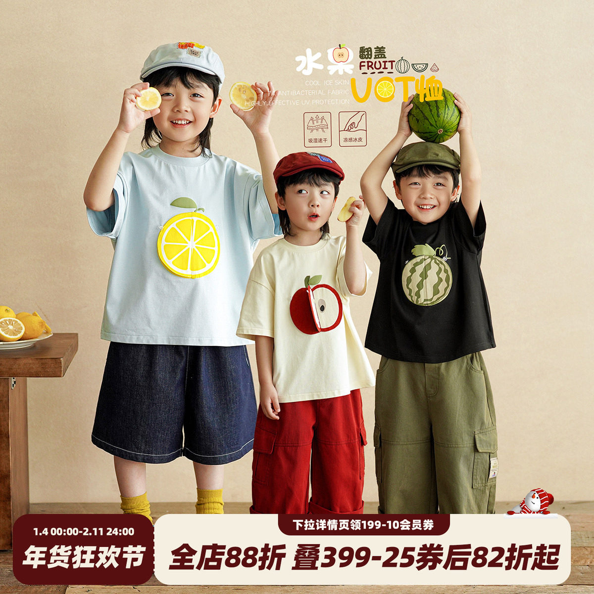 砚台家男童UPF50短袖T恤夏季新款儿童白色体恤男宝宝速干上衣半袖