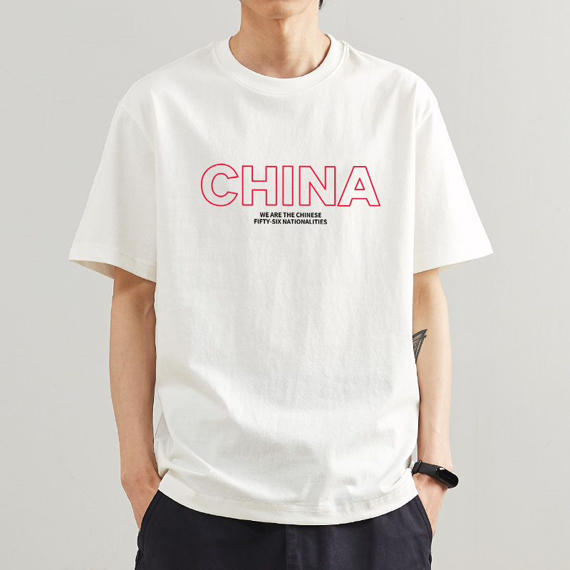 新疆棉】夏季100%纯棉圆领白色短袖t恤男女印花字母宽松体恤半袖