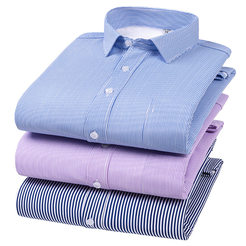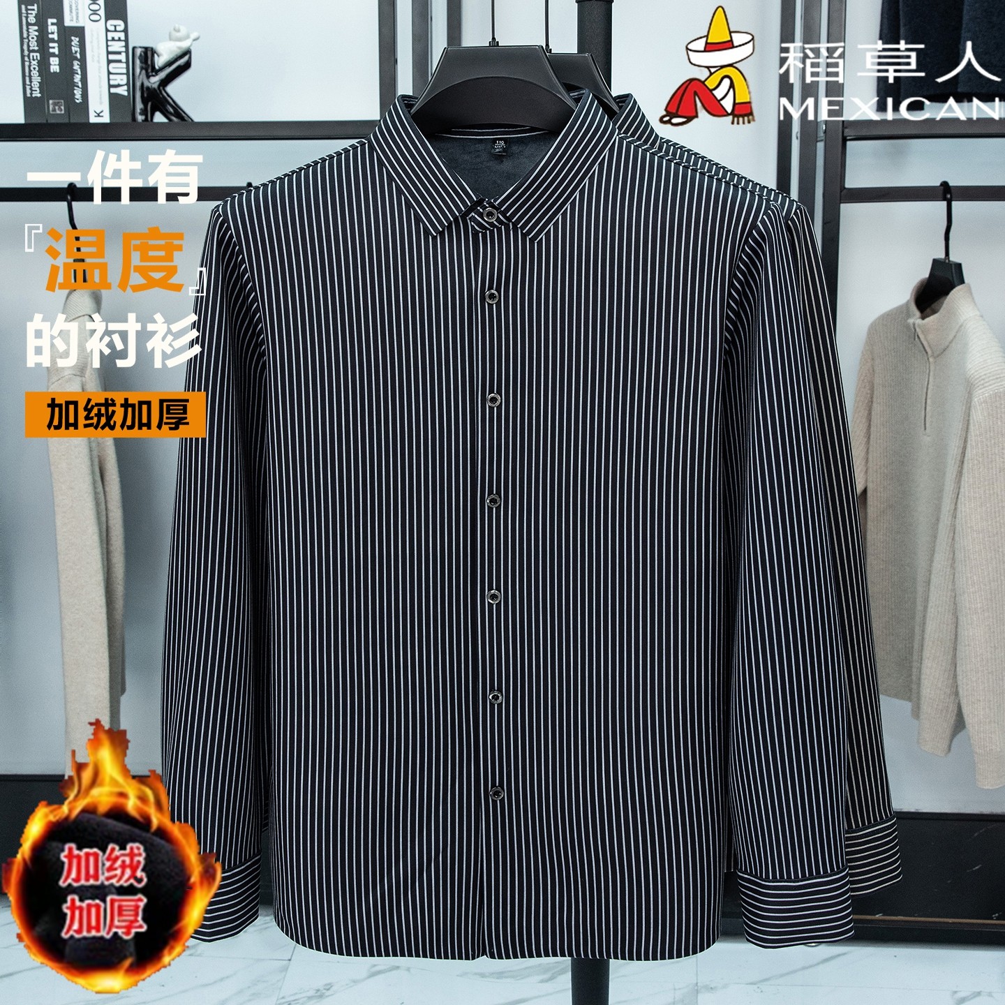 稻草人男士条纹衬衫加绒加厚长袖商务休闲免烫衬衣中老年父亲上衣