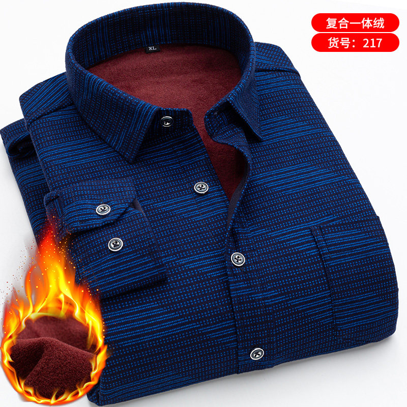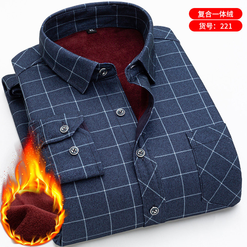 冬季中老年保暖衬衫男士加绒加厚父亲中年长袖保暖衬衣爸爸装宽松