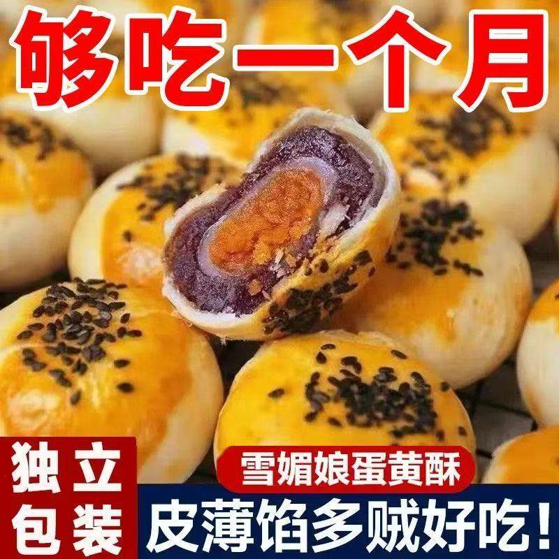 手工咸蛋黄酥四粒紫薯雪媚娘肉粉松麻薯糕点中秋零食软糯营养早餐