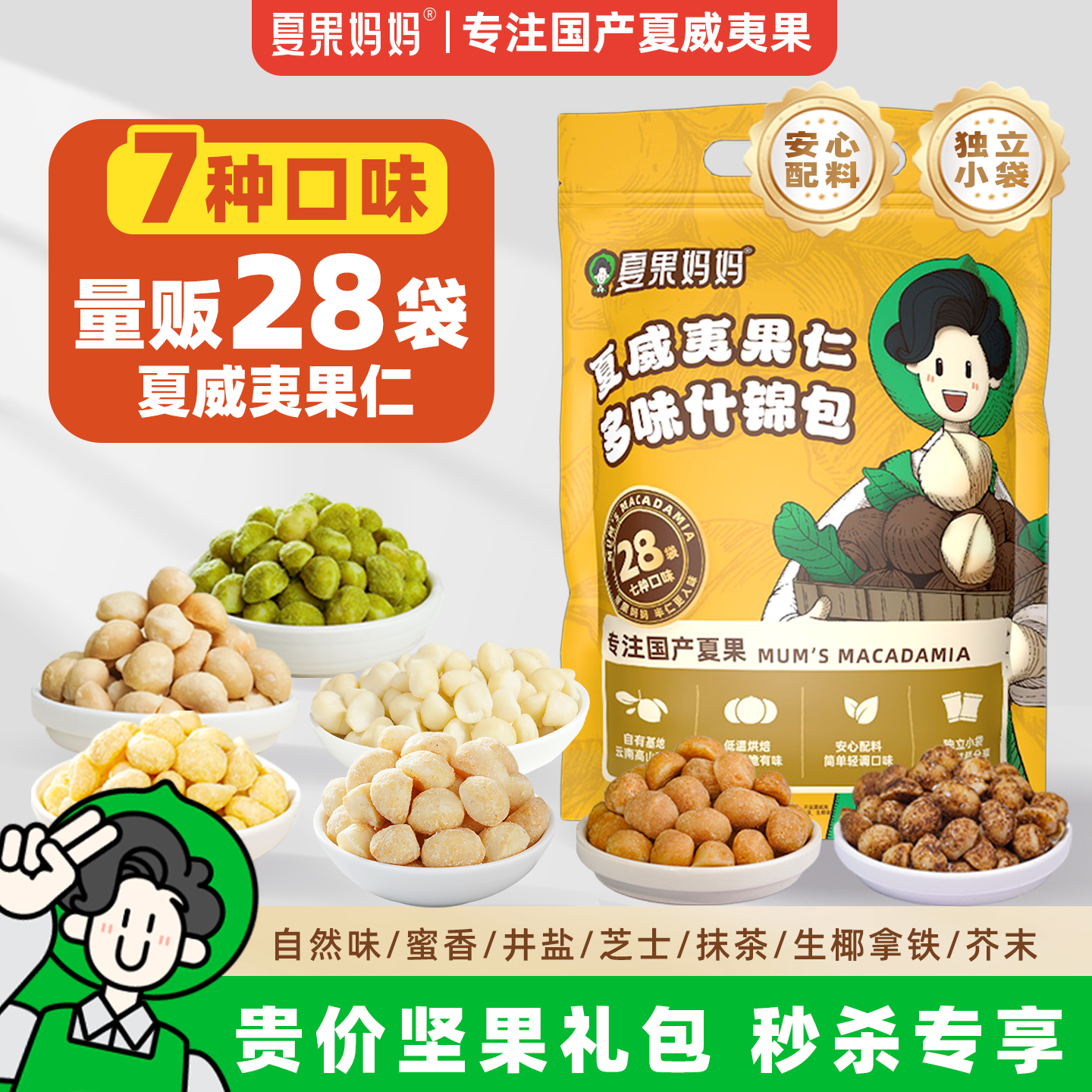 夏果妈妈芥末味夏威夷果仁芝士奶香夏威夷坚果仁小包坚果干果零食