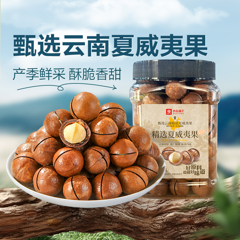 良品铺子夏威夷果袋装500g罐装夏威夷坚果仁奶香味干果新货零食
