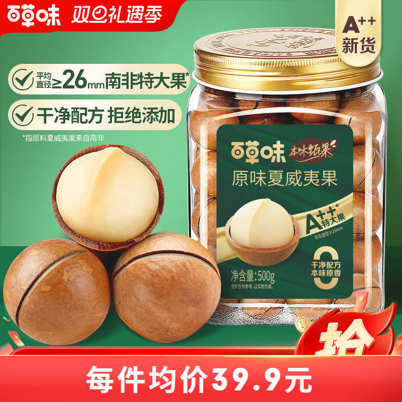 百草味本味甄果特大颗夏威夷坚果500gx2罐装健康干果零食休闲