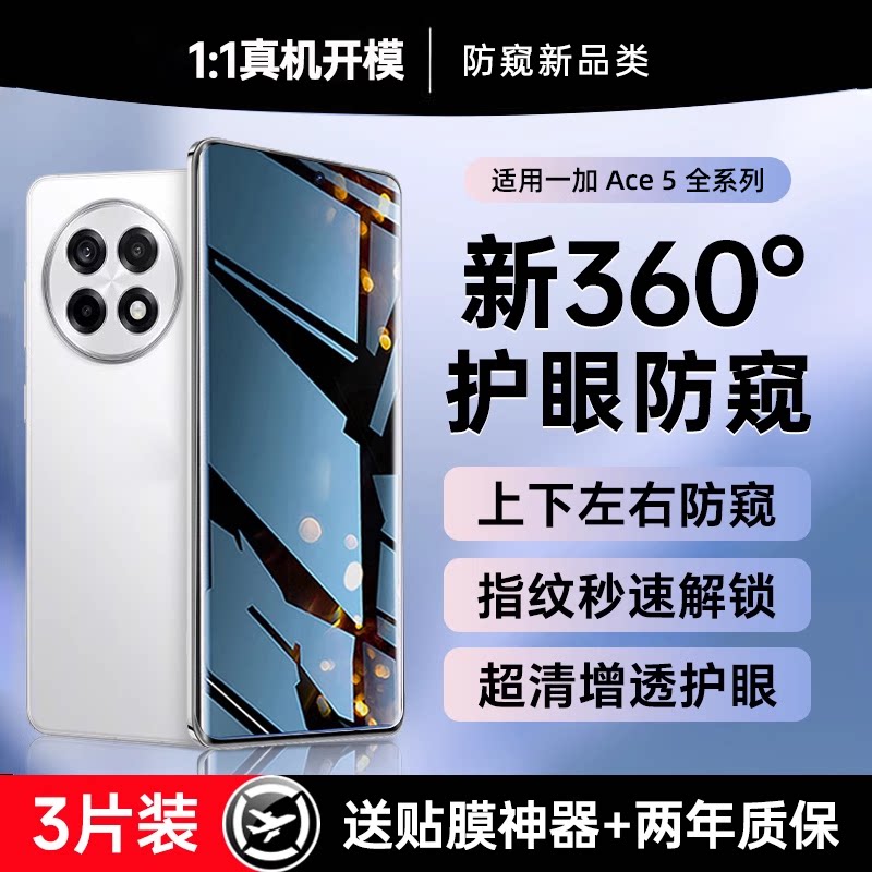 贴膜侠【360°新防偷窥】适用一加ace5钢化膜一加ace5pro防窥膜一加ACE3手机膜防ace3pro全屏1+12/11防偷窥