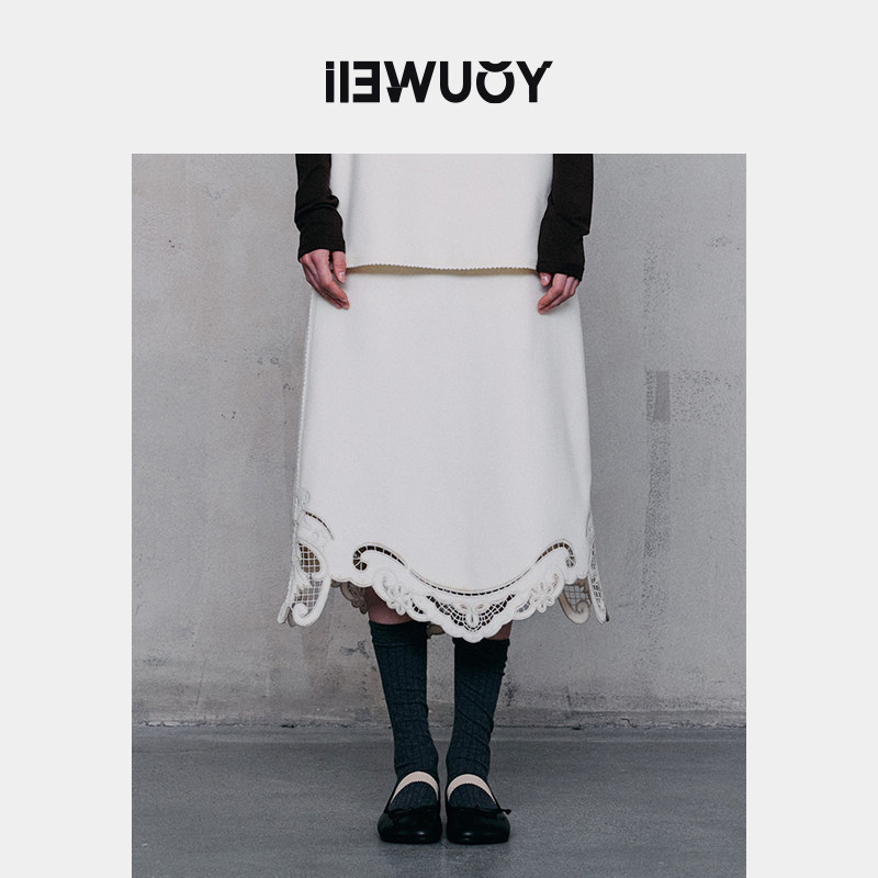 YOUWEI有尾2024冬季蕾丝刺绣双面呢半裙女甜美秋冬裙Y5824448