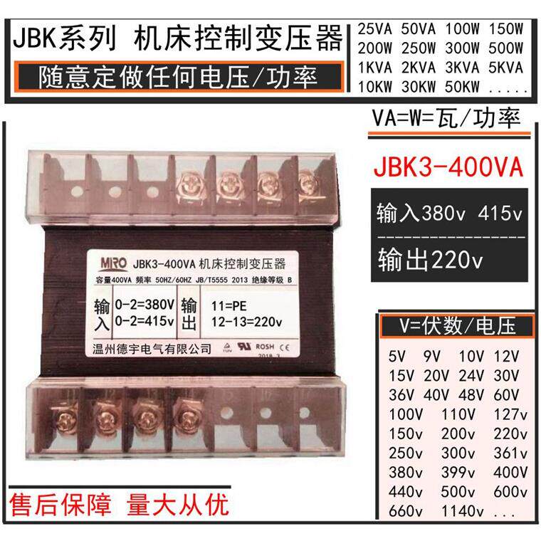 包邮JBK3-400VA单相功率400瓦机床变压器输入380V415V转输出220V