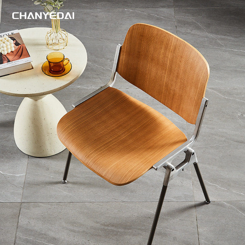 中古不锈钢餐椅家用实木靠背凳子复古咖啡椅可堆叠放餐厅商用椅子