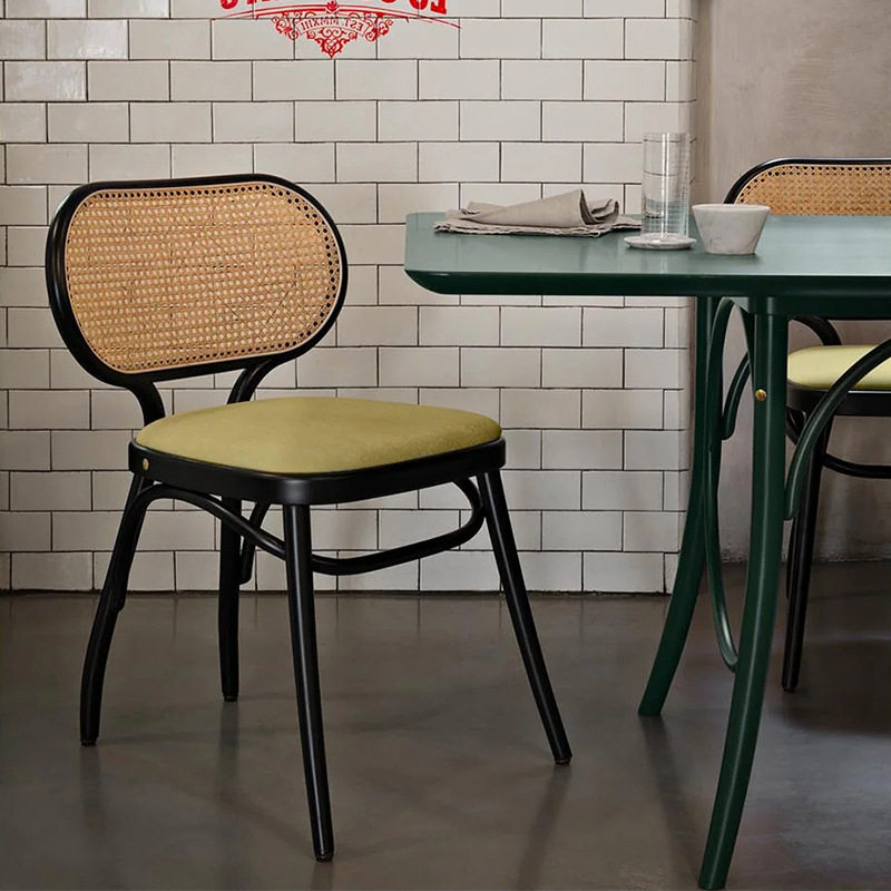 法式中复古实木藤编餐椅家用昌迪加尔靠背椅侘寂风咖啡餐厅软包椅