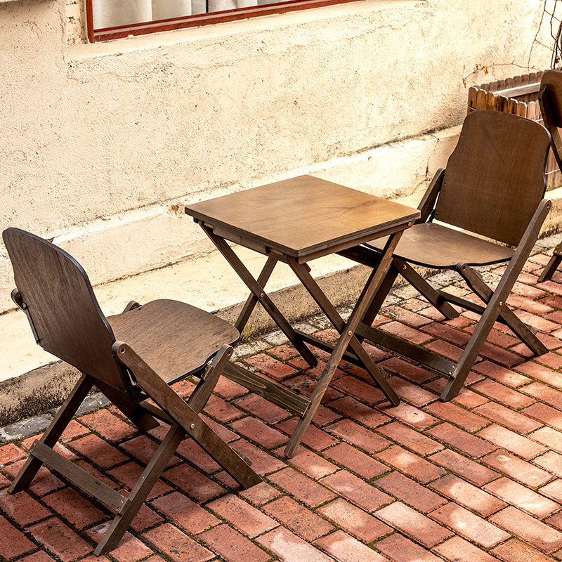 复古木质折叠桌椅套装咖啡店便携方形桌子奶茶店休闲椅简约茶桌子