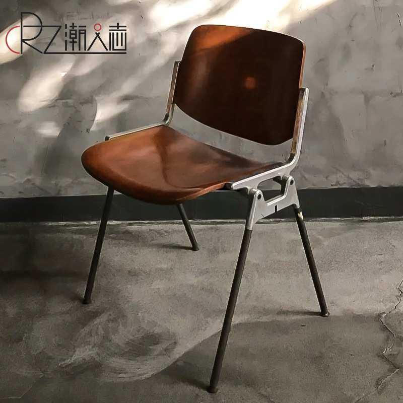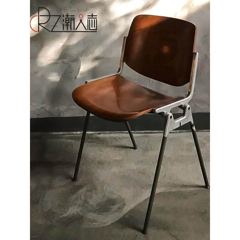 中古餐椅复古咖啡椅靠背凳子设计师不锈钢可叠放高级商用餐饮椅子