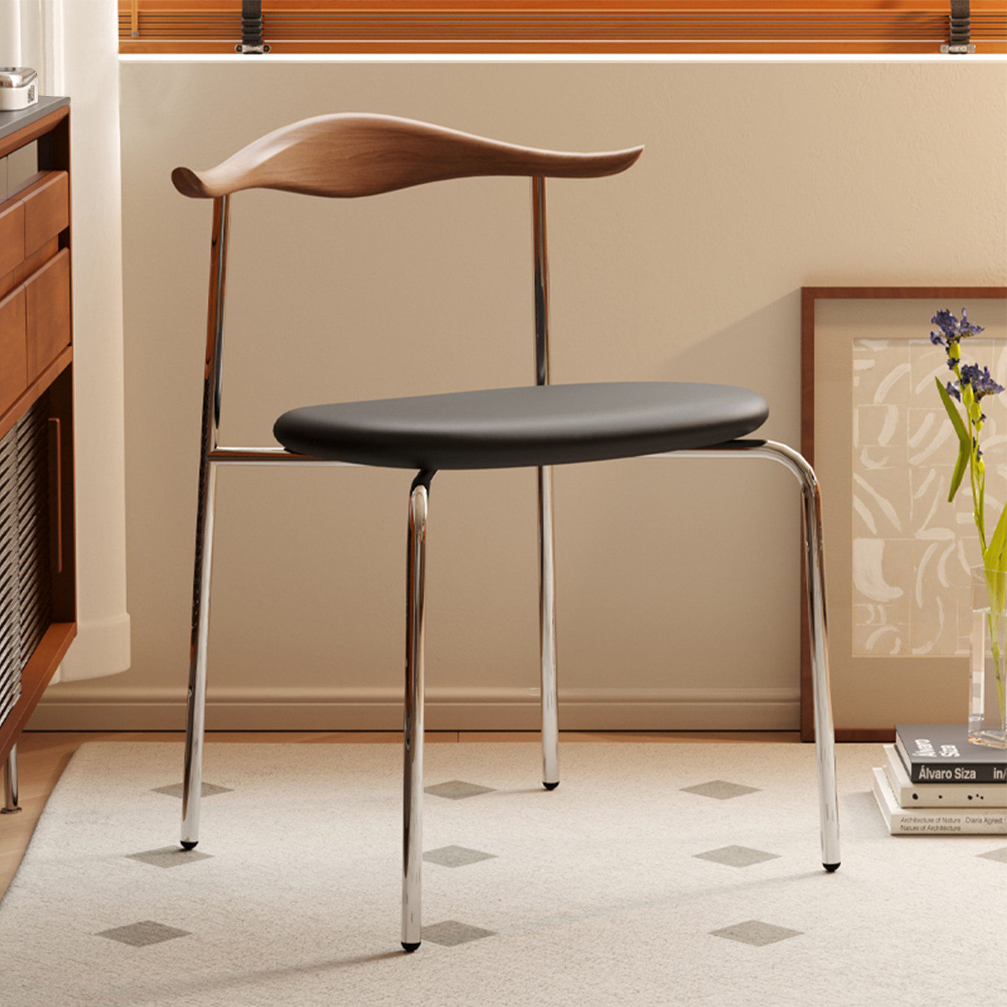 北欧家用餐椅可叠放实木靠背椅设计师复古羊角椅休闲化妆椅咖啡厅