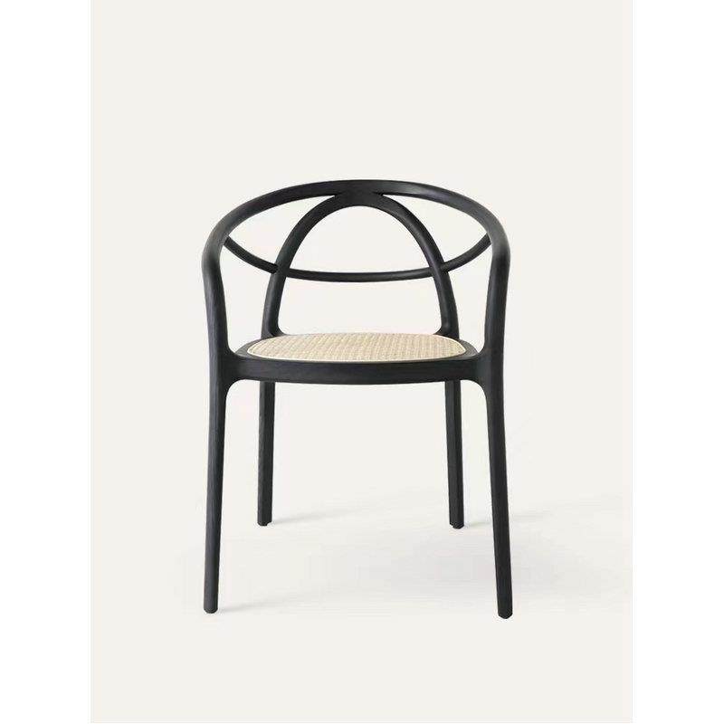 XZC303藤编餐椅实木设计师单人椅子北欧椅家用复古咖啡椅餐厅黑色