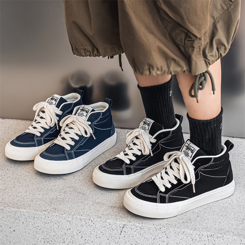 2025新款高邦板鞋平底帆布鞋男百搭韩版学生系带高帮男鞋运动潮鞋