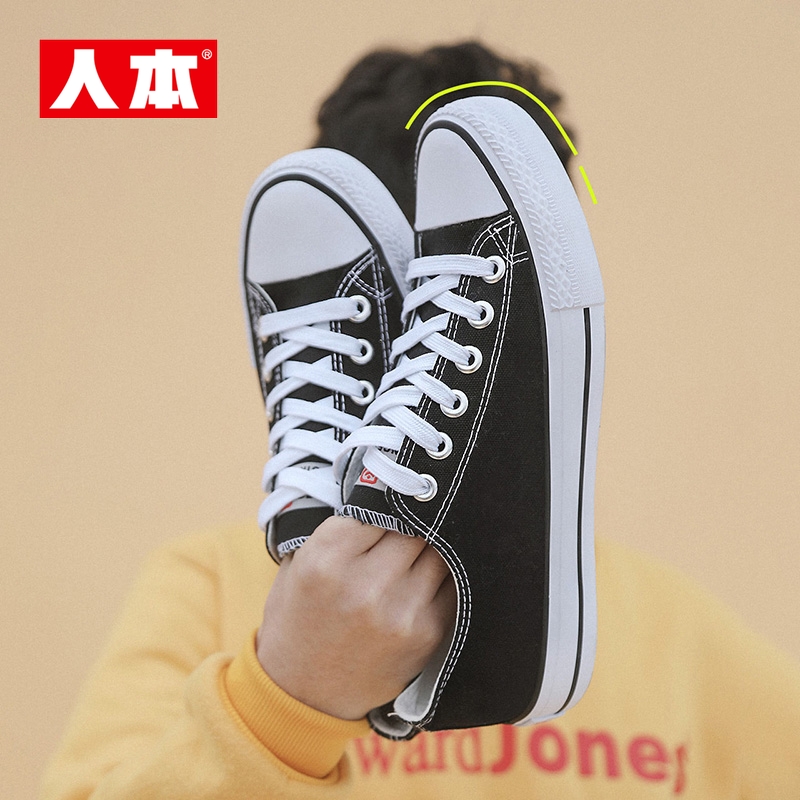 人本官方店2025春季平底板鞋帆布鞋情侣百搭运动复古休闲男鞋韩版