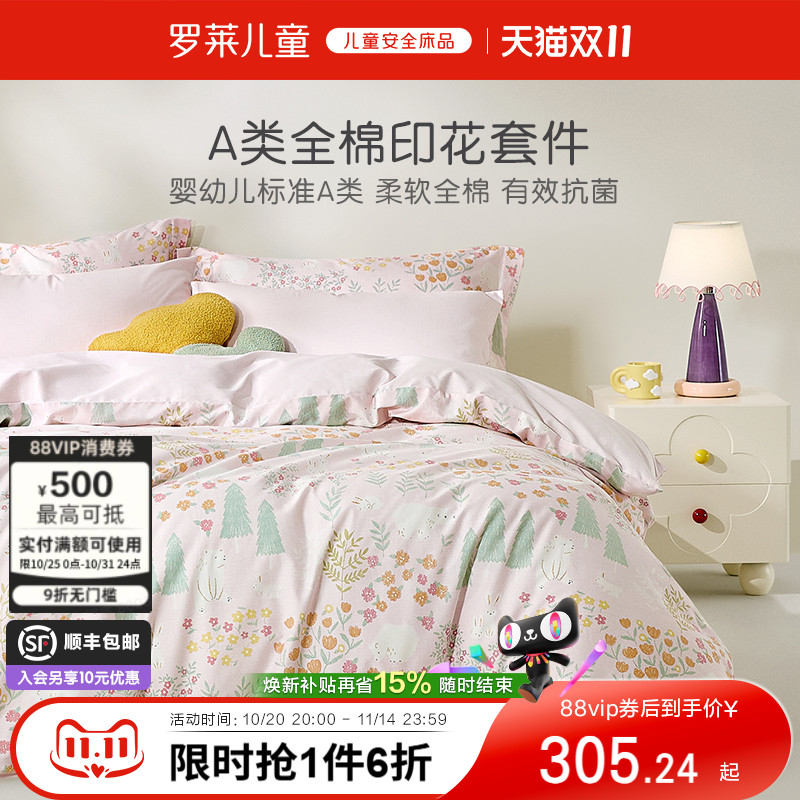 罗莱儿童新品A类全棉纯棉斜纹多件套学生宿舍床笠床单套件被套四