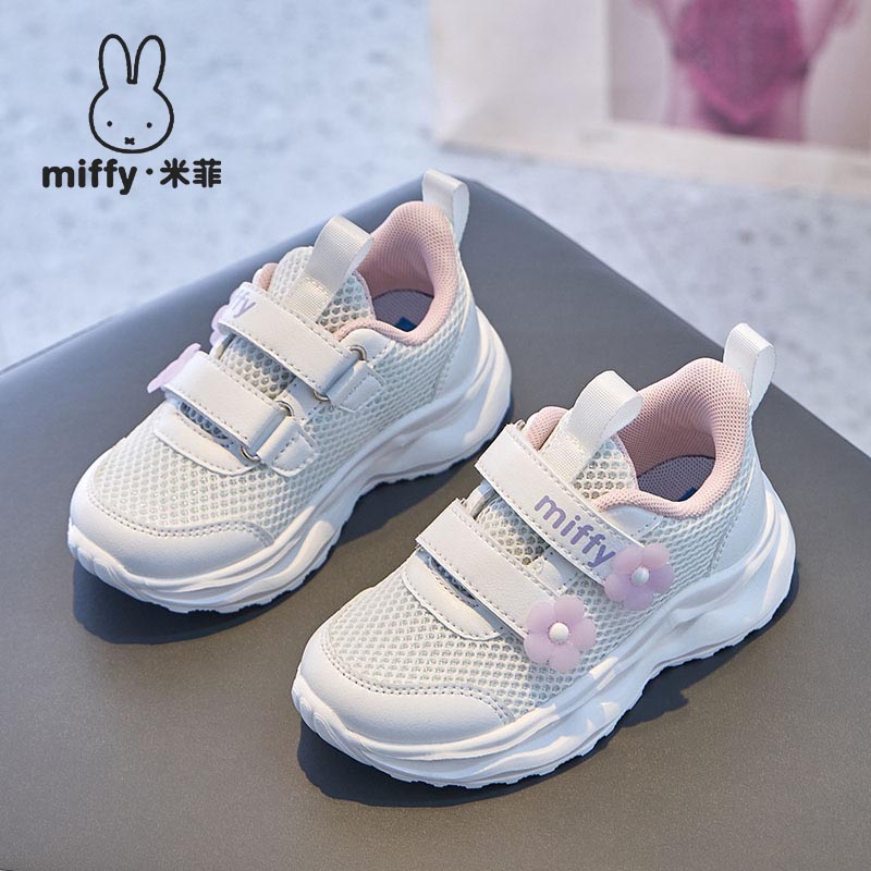 Miffy米菲童鞋女童夏季新款网面跑步鞋透气休闲百搭免系带运动鞋