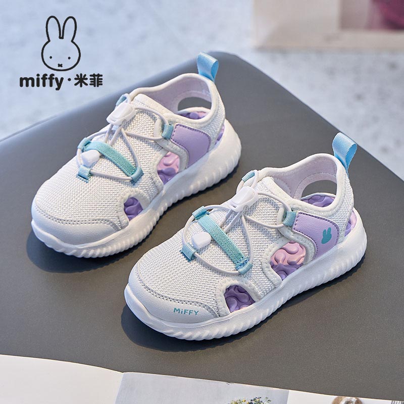 Miffy米菲女童鞋子2025夏季新款女童透气跑步鞋免系带网面运动鞋