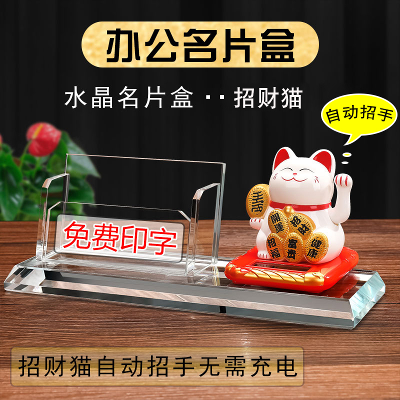 定制水晶名片盒名片夹前台名片架卡片盒收纳盒台式卡座商务高档桌面摆件放名片盒子大容量个性定做刻字logo