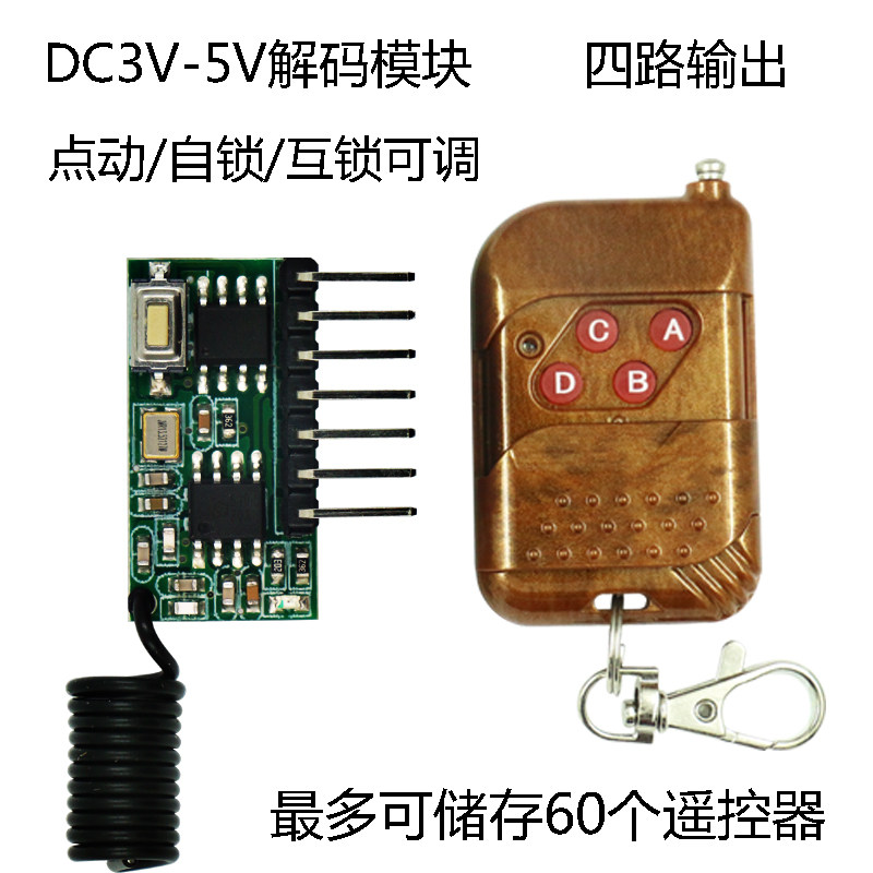 4路学习型无线模块433频率遥控接收模块3V5V高电平输出模块